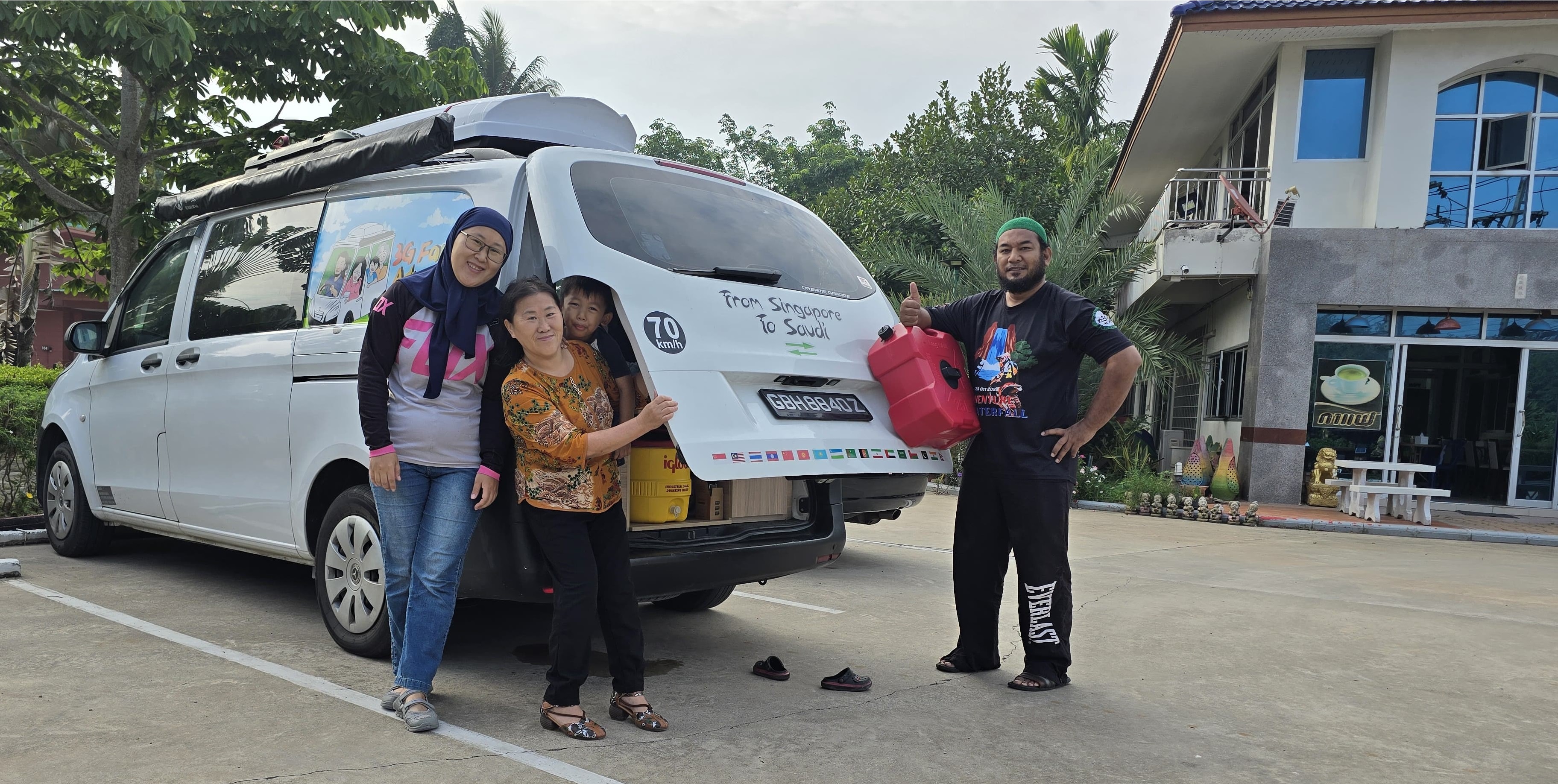 We are starting the journey in our Singapore-registered Mercedes Van. With determination and a lot of hard work, we managed to set up everything and made it into (sort of) a camper within just a month. This vehicle will be both our transportation and our home throughout our adventure.